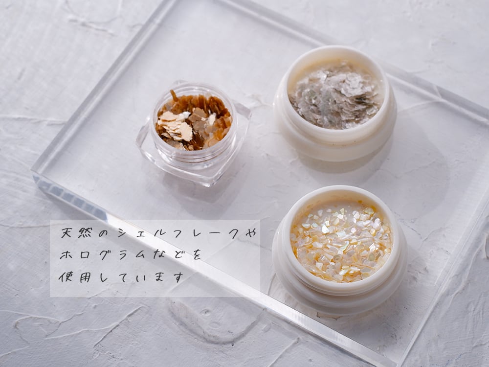 天然のシェルや銀箔、スパンコール等を合わせました。