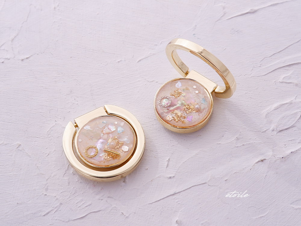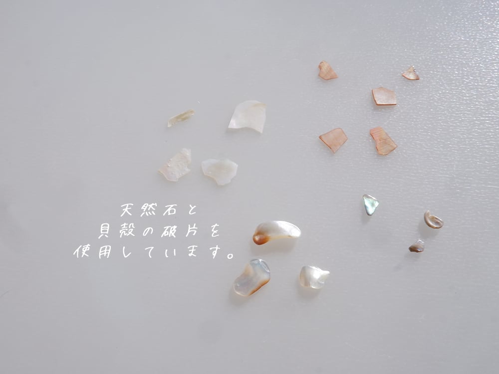 樹脂(レジン)、貝殻(シェル)、金箔、