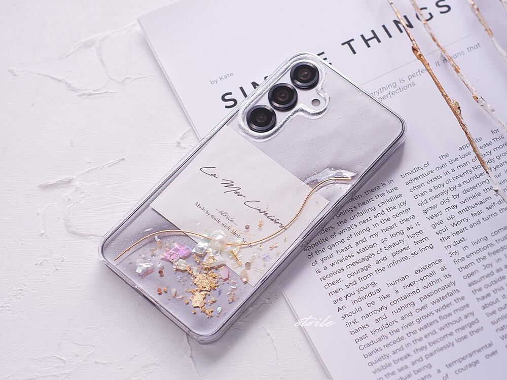 ゆるやかな真鍮芯を合わせたシンプルなスマホケースです。